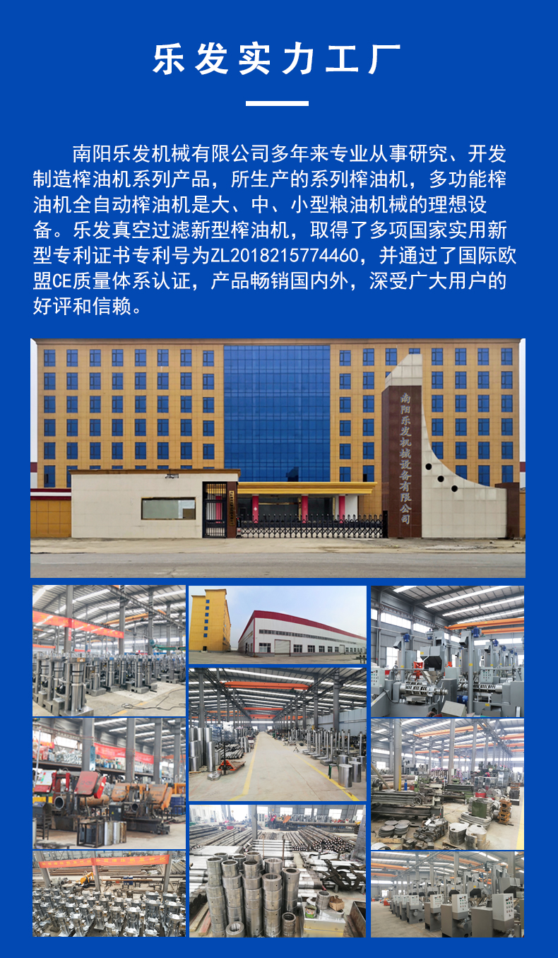 河南南阳乐发机械有限公司多年来从事研究、开发、制造榨油机系列产品,